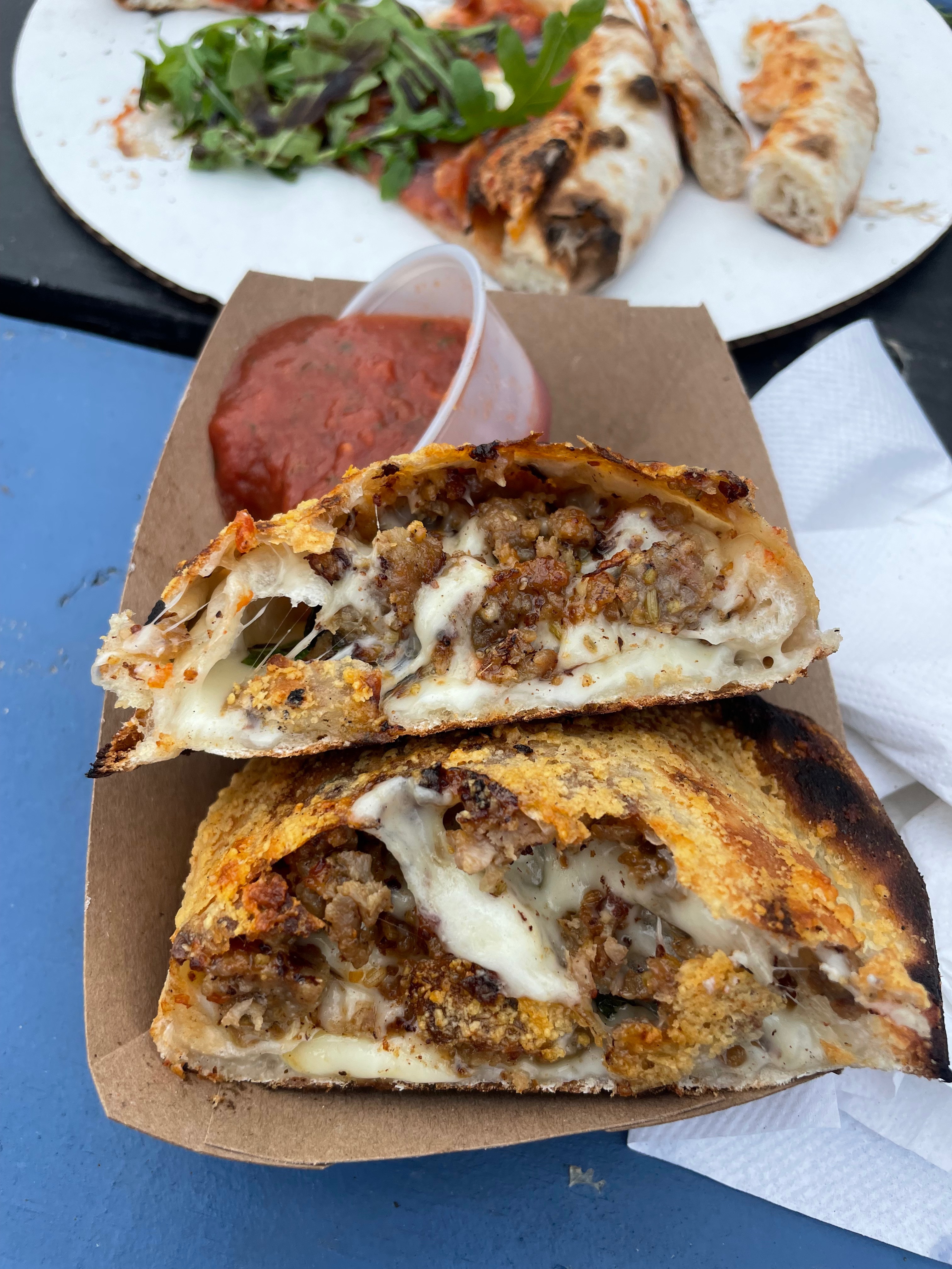 So very much impressed with Nocco's. I got their margherita pizza, spicy Italian pocket, and meatball appetizer. Nestled in drinks plaza south east Austin, this spot is a HIDDEN GEM! The margherita pi